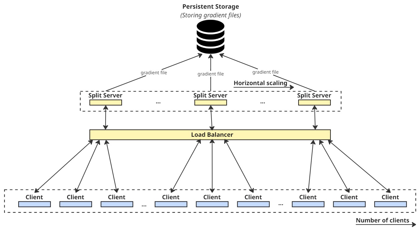 Khi Split Server chỉ đảm nhiệm việc tính toán forward activation và backward gradient, service này có thể được thiết kế như một stateless application, giúp việc scale hệ thống trở nên linh hoạt và hiệu quả hơn.